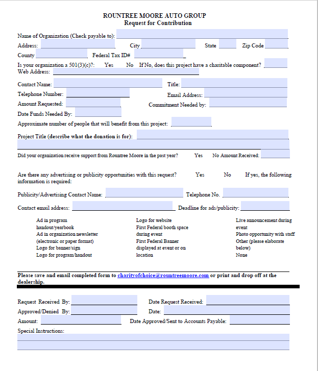 An application is required to begin the request process. Once an application is completed online, it is submitted to our Contribution Committee for review. Contribution request decisions will be communicated by email. Please allow two weeks for processing.